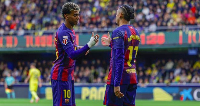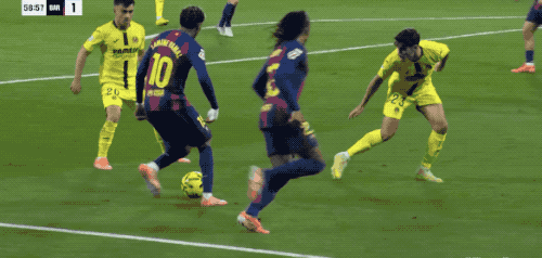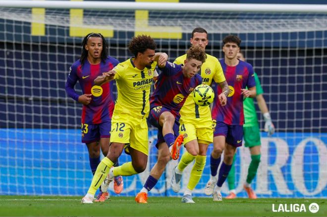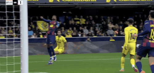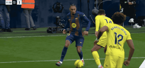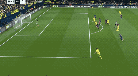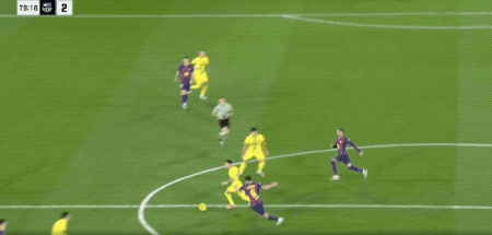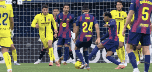 第63分钟,巴萨在比利亚雷亚尔的禁区内连续围攻,莱万的射门被挡出,德容助攻亚马尔破门。