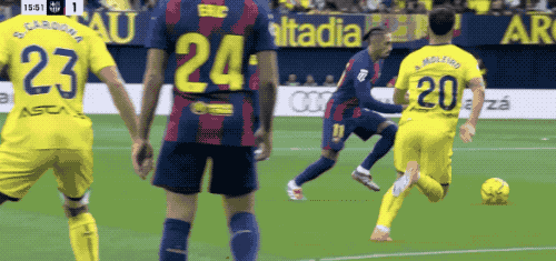 第6分钟,比利亚雷亚尔如法炮制,拉菲尼亚快速回追,和孔德联手,封堵了佩雷斯的射门。